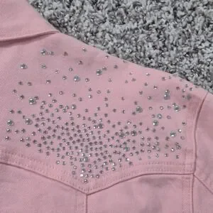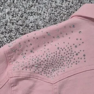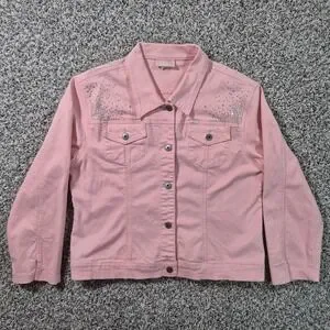 Ethyl Premium Denim Rhinestone Pink Western Jacket Country Cowgirl Womens Large
