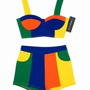 Elevate your style with Cherry Melon's high waist shorts, featuring a vibrant color block design in green, blue, yellow, and orange. Perfect for a bold and trendy look.