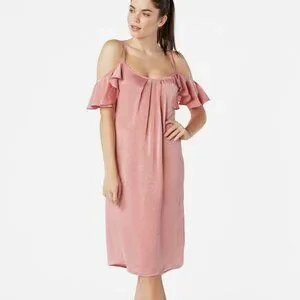 NEW JustFab Midi Slip Dress XS Off Shoulder X-Small NWOT Rose Pink