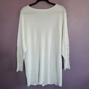 Chico's White Knit Silver Rhinestone Oversized Dolman Sleeve Sweater Tunic