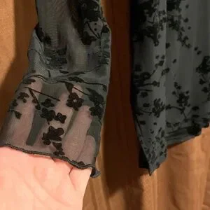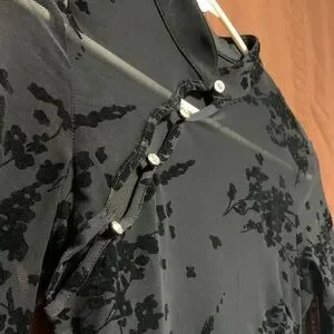 This top-half-sheer black floral dress is perfect for any occasion but especially a night out with friends or a special someone. The intricate floral design adds a touch of sophistication with a heavy dose of sexy with the buttoned chest and a right thigh revealing slit.