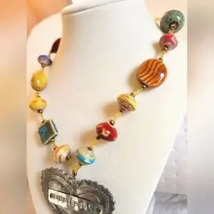 ✨️HP✨️NWOT Pretty Boho Artisan Colorful Multi Bead Metal Heart Necklace