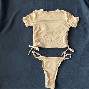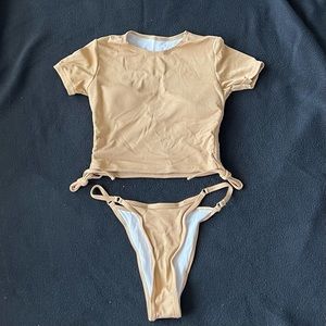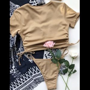 ribbed ruched t shirt bikini set Oct sale