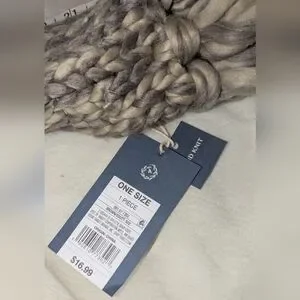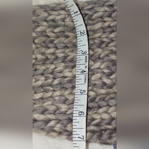 Cozy chunky knit scarf. Features a blend of brown and tan. Perfect for warmth and style.