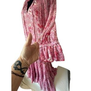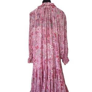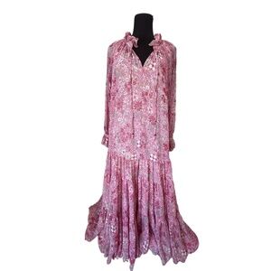 Free People Womens Small Pink Multi Floral Sheer Groovy Ruffle Maxi Feminine