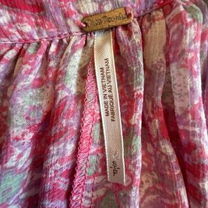 Free People Maxi Dress Womens Size Small Pink Multi Floral Sheer Ruffle Tiered with Slip Dress Bohemian Feminine