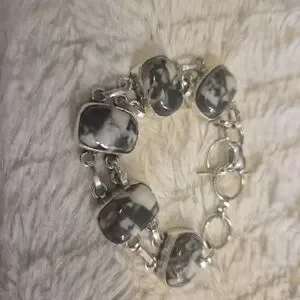 Elegant Silver and Black Buffalo Stone Bracelet 7"