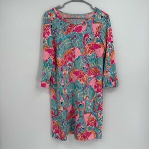 Lilly Pulitzer Linden Peel and Eat Flamingo 3/4 Sleeve Dress Size S Beach Preppy