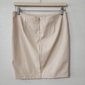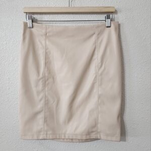 Haute Monde Faux Leather Skirt Size L Cream Mini Zip Closure Trendy Moto