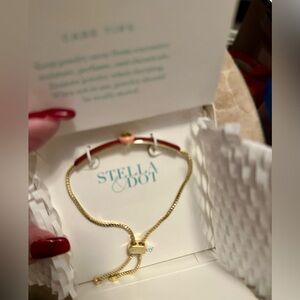 Brand new with box, never worn. Beautiful Stella & Dot 14k Gold Dipped Enamel Glass Stone CZ 10.5" in Length Fits Small to Large Wrists