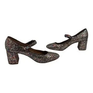 Madewell Size 7.5 The Zelda Mary Jane Block Heel in Glitter Party Cocktail