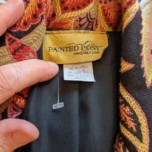Painted Pony Uniquely USA Size S Tapestry Open Blazer Jacket Floral Cotton Blend