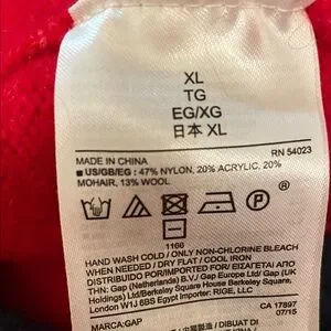 Stylish and eye-catching red GAP sweater with navy, pink, teal and white pattern. Ideal for cool weather. Wool blend — very soft.