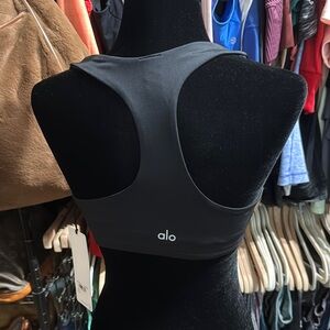 Experience comfort and style with the ALO Yoga Women's Black Sports Bra. Perfect for workouts or casual wear.