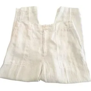 Lauren Ralph Lauren Linen Cropped Pants White High Rise Suggested Size 14