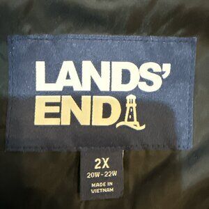 This Lands' End Size 2X 20W-22W Black Quilted Puffer Zippered 2-Pocket Vest is a stylish and practical addition to any woman's wardrobe. Made of polyester with a quilted design, this mid-length sleeveless vest features a zip closure and two pockets, perfect for travel or casual occasions. The black color adds versatility, while the polyester lining and insulation provide warmth for the winter, fall, and spring seasons. With its regular fit and plus size design, this vest is both comfortable and flattering for a range of body types.