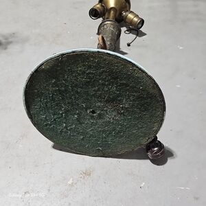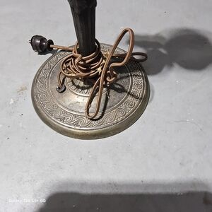 The image shows an antique or vintage table lamp base, likely made of brass or a similar metal, designed to hold a shade (which is not present in the image).