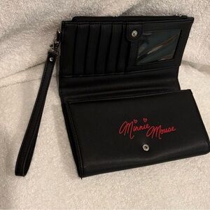 Minnie mouse Disney park Stylish polka dot wristlet featuring a bold red bow design. Perfect for adding a playful touch to any outfit.