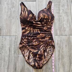 Miraclesuit One Piece Swimsuit Size 14 Brown Tropical Leaf Underwire Ruched