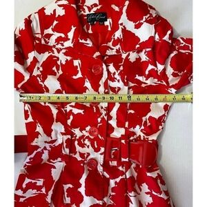 Eden Court Belted Trench Jacket: Oh so cute floral print jacket features a button front, short rolled tab sleeves, back storm flap.