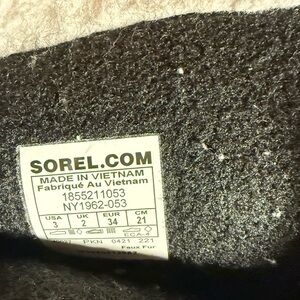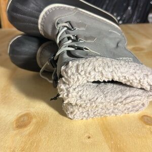 Sorel brand winter boots in size 3, plush in grey and black, waterproof