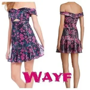 Wayf Janet Sequined Off-the-shoulder Mini Dress floral sparkly peekaboo cutout