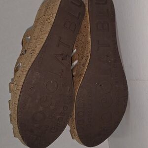 Chocolat Blu Peep Toe Yemaya Slide Platform Cork Wedge Womens Size 10