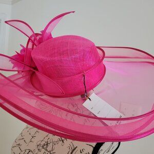 Paris Hot Pink Fascinator Hat โ Large Brim Organza Headpiece for Wedding & Derby