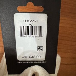 Elegant cream gloves with black accents. Features a playful design. Karl lagerfeld and Choupette. Gloves/ mittens new with tags never worn