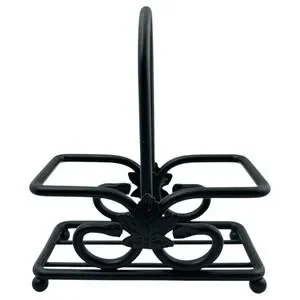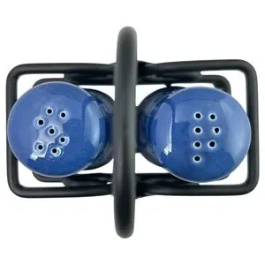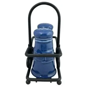 Longaberger Cornflower Blue Salt & Pepper Shaker Set w/ Black Wrought Iron Caddy