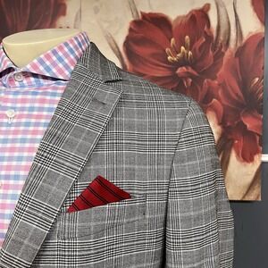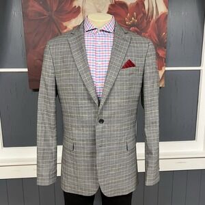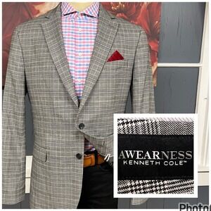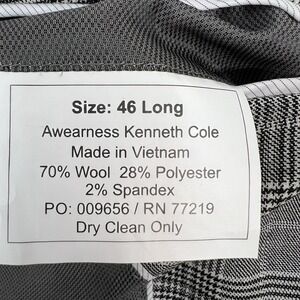 Kenneth Cole Blazer Sport Coat Mens 46L Long Slim Fit Wool Blend Stretch Gray