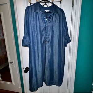 Chico's Indigo Button-Up Shirt Dress Faux Denim Popover Dress plus size 20