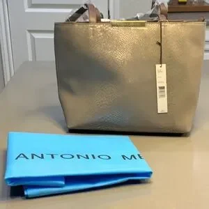 Antonio Melani Leather Tote Bag, Lightweight Gold Shimmer