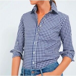 Untuckit Belleza Womens 8 Navy Gingham Check Long Sleeve Button Up Casual NWT