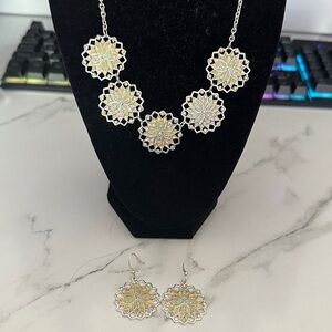 Gold and Silver Necklace and Earring Set with Intricate Detailing