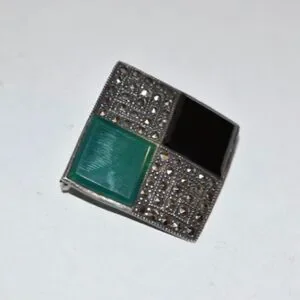 SOLD Vintage Sterling Silver marcasite onyx Brooch Pendant