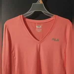 Fila Women's Pink V-Neck Top Long Sleeve Size Small