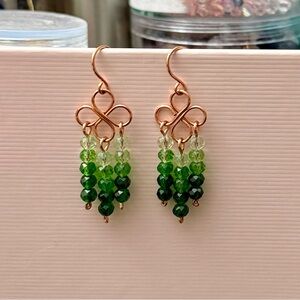 Dress up any outfit a with these beautiful green ombré chandelier earrings. Handmade using permanently colored copper wire that is hypoallergenic and tarnish-resistant. Perfect for any occasion.