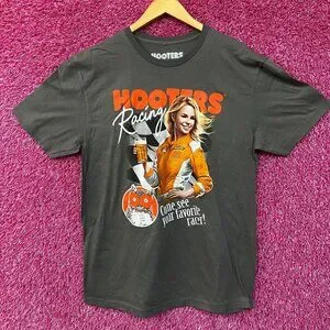 Hooters Racing Come See Your Favorite Racer T-Shirt Large. Generally measures 21 inches pit to pit and 30 inches long. Amazing graphic design shirt, perfect for Hooters fans. New never worn overstock in great condition.