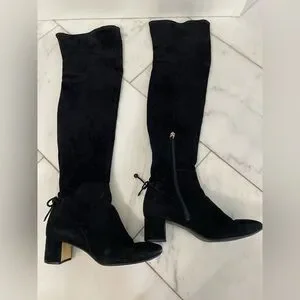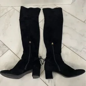 Tory Burch 41621 Black Over The Knee Suede Leather Laila Block Heel Boots size 8