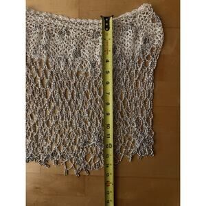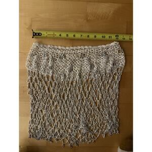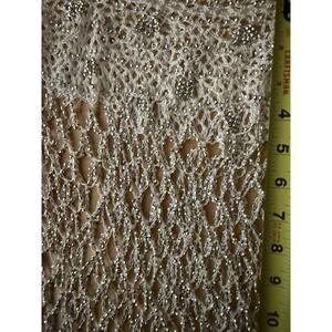 VTG Crochet Sequin Beaded Fringe Mini Skirt Cream White XS