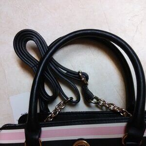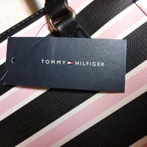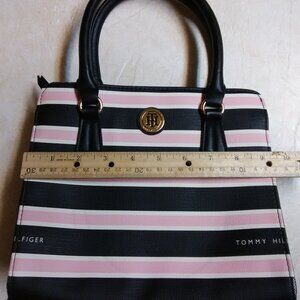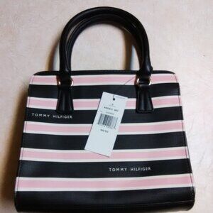 Tommy Hilfiger pink & black & cream ? striped handbag NEW NWT