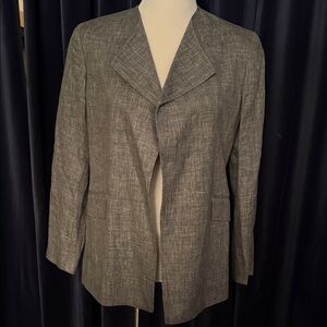 Sophisticated charcoal blazer with a modern cut. Ideal for professional settings. Features a sleek, tailored design. Like New! Gentle Worn