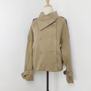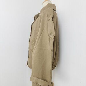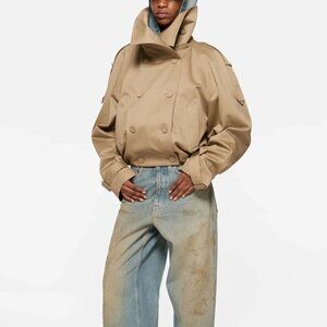 This jacket from Acne Studios boasts a modern trench coat-inspired design and is made from textured cotton twill. An elongated collar, shoulder straps and sleeve straps with belt loops lend the style striking details. Gathers at the hem create a slight volume, while a leather logo patch on the back rounds off the design in style. The cut is relaxed and ends just below the waist - ideal for transitional looks.