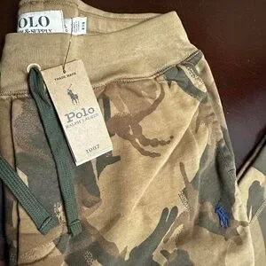 Stylish camouflage joggers by Ralph Lauren. Features a blend of brown and green tones.