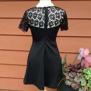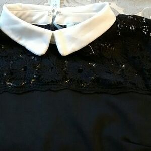 NWT Sweet little black dress with a sexy twist. Back zip, fit and flare style. Yoke of bodice and top of back are black lace topped with a white collar. 70 % cotton, 30 rayon for comfort all year. This fits my size 5 mannequin perfectly.Size S/6 measures 36 at chest, 28 at waist( there is stretch) 42 at hips, 35 long from shoulder to hem. Perfect for work or play.