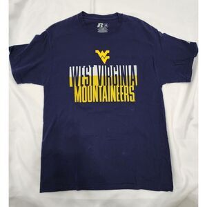 RUSSELL ATHLETIC WEST VIRGINIA MOUNTAINEERS SHIRT MENS LARGE BLUE WHITE GOLD EUC