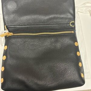HAMMITT VIP Medium - Black Leather Brushed Gold & Red Zip Clutch or Shoulder or Crossbody Bag