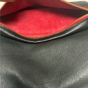 Color: Black leather, Brushed Gold Hardware, Red Zipper and Red Suede Interior