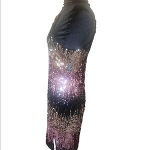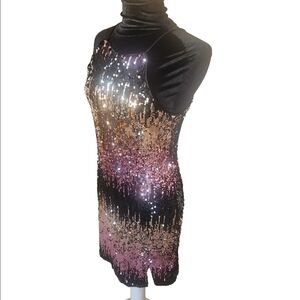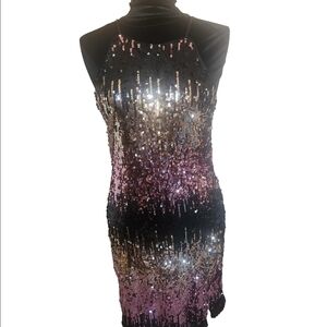 Venus Sequin Halter Dress - Black and Pink in size Medium.